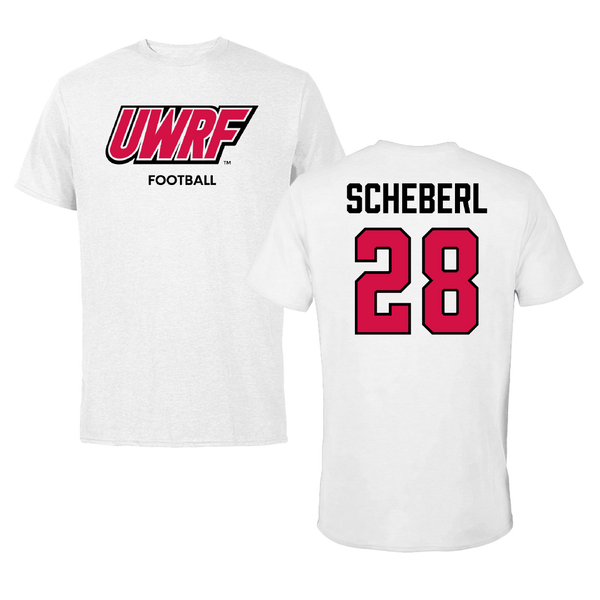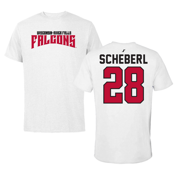University of Wisconsin-River Falls Football White Classic Performance Tee - #28 Justin Scheberl