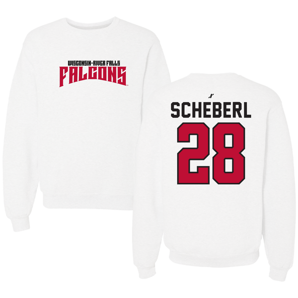 University of Wisconsin-River Falls Football White Classic Crewneck - #28 Justin Scheberl