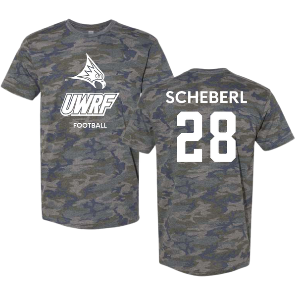 University of Wisconsin-River Falls Football Vintage Camo Tee - #28 Justin Scheberl