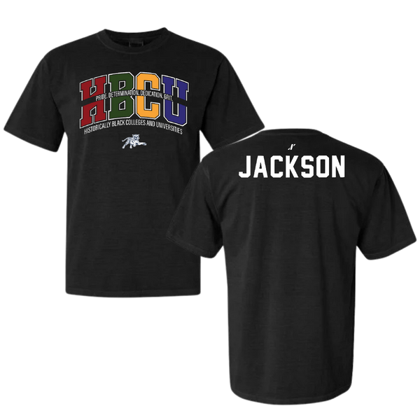 Jackson State University TF and XC Black HBCU Comfort Colors Tee - Jyquan Jackson