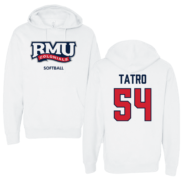 Robert Morris University Softball White Classic Hoodie - #54 Kailani Tatro