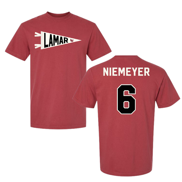 Lamar University Soccer Canvas Red Pennant Comfort Colors Tee - #6 Kaitlyn Niemeyer