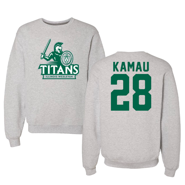 Illinois Wesleyan University Soccer Gray Titans Crewneck - #28 Kalabi Kamau