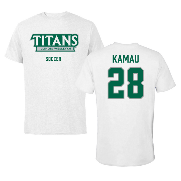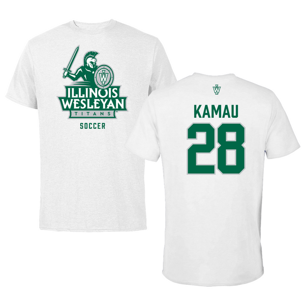 Illinois Wesleyan University Soccer White Tee - #28 Kalabi Kamau