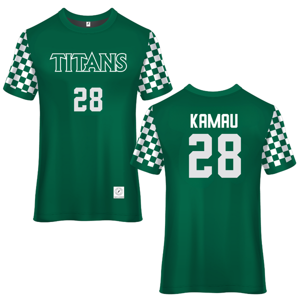 Illinois Wesleyan University Soccer (M) Green Gameday Tee - #28 Kalabi Kamau