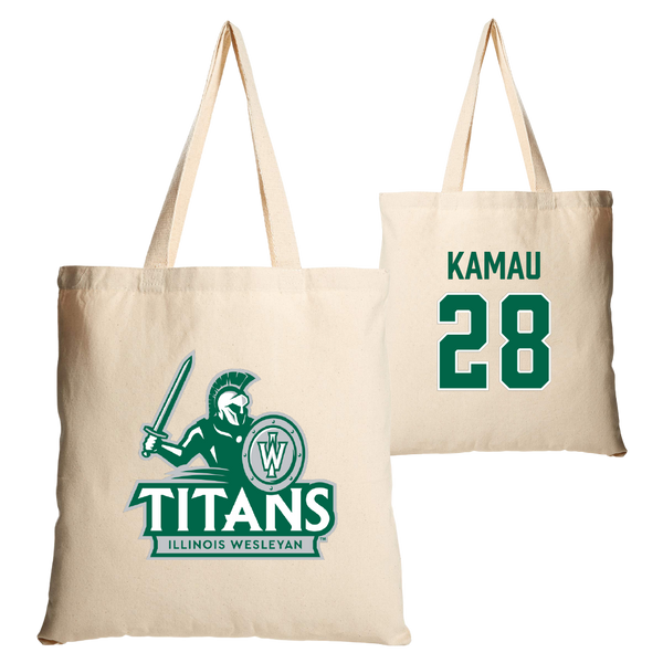 Illinois Wesleyan University Soccer Tan Canvas Tote Bag - #28 Kalabi Kamau