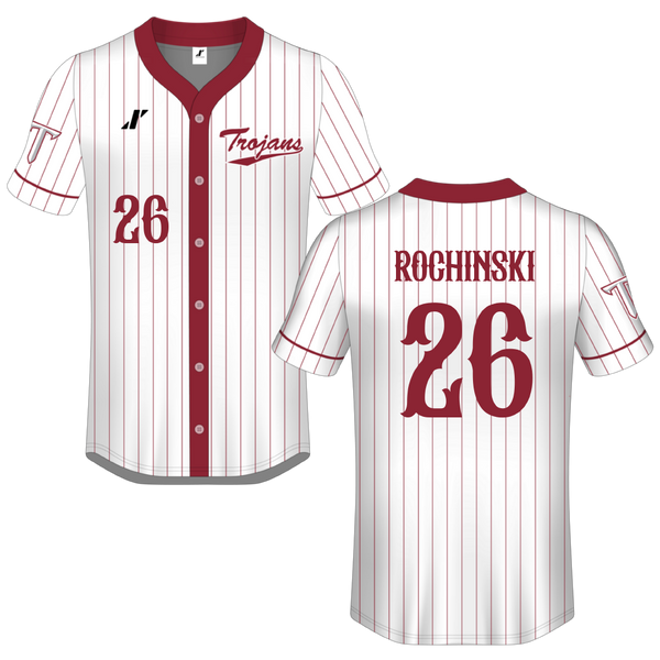 Troy University White Pinstripe Button-Down Jersey - #26 Kalee Rochinski