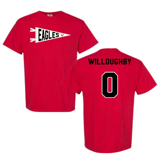 Eastern Washington University Soccer Red Pennant Comfort Colors Tee - #0 Kamryn Willoughby