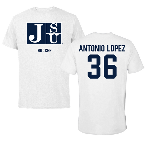 Jackson State University Soccer White Performance Tee - #36 Karime Antonio Lopez