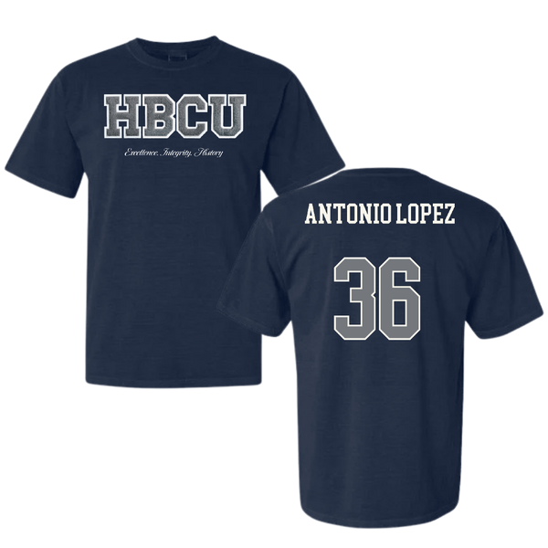 Jackson State University Soccer (W) Navy HBCU Varsity Comfort Colors Tee - #36 Karime Antonio Lopez