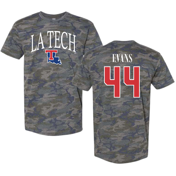 Louisiana Tech University Baseball Vintage Camo Tee - #44 John Evans