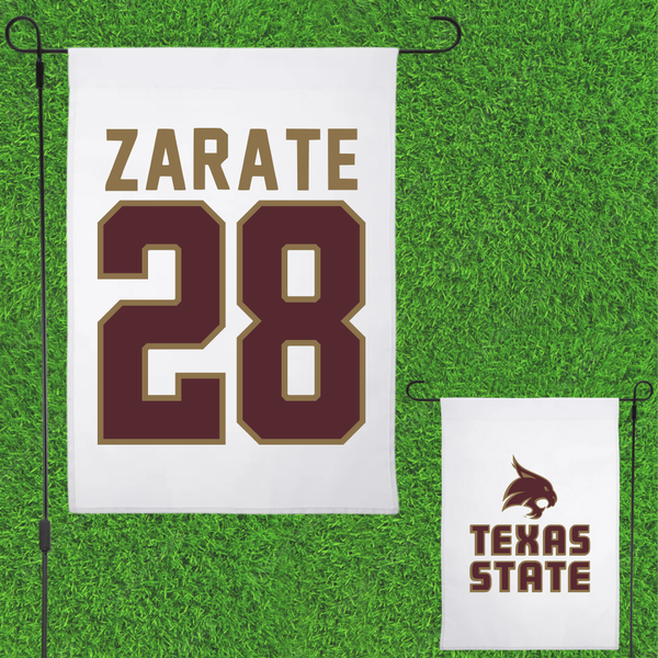 Texas State University Softball White Garden Flag - #28 Katarina Zarate