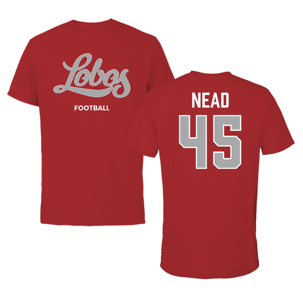 University of New Mexico Football Canvas Red Tee - #45 Keayen Nead