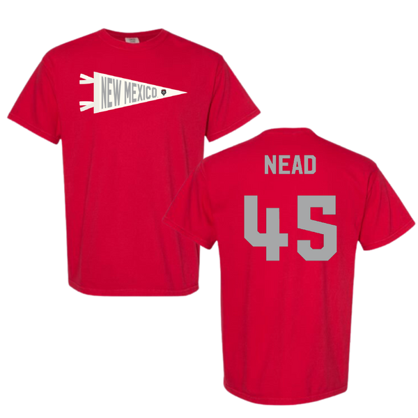 University of New Mexico Football Red Pennant Comfort Colors Tee - #45 Keayen Nead