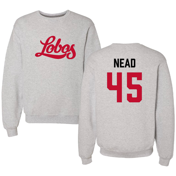 University of New Mexico Football Light Gray Crewneck - #45 Keayen Nead
