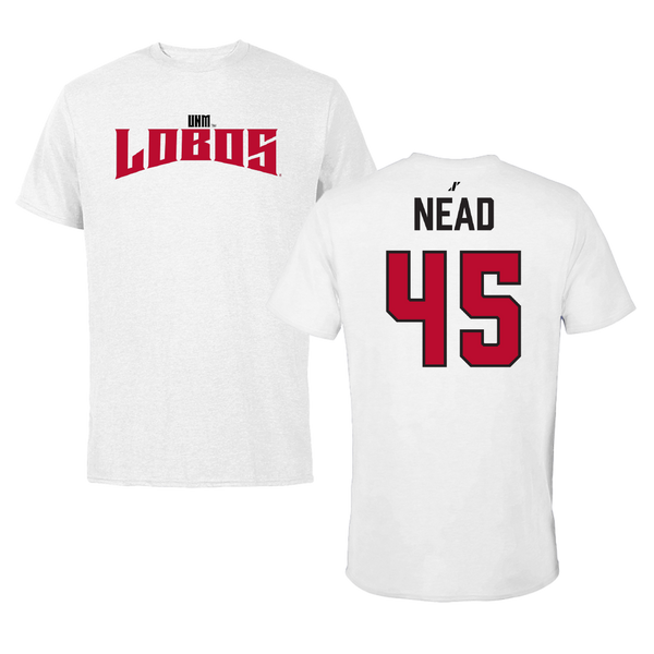 University of New Mexico Football White Classic Tee - #45 Keayen Nead
