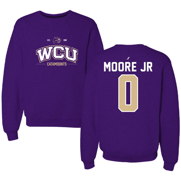Western Carolina University Football Purple General Crewneck - #0 Ken Moore Jr