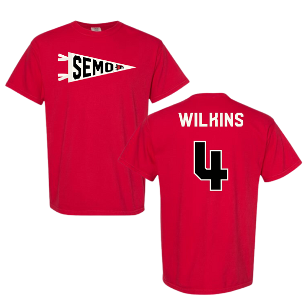 Southeast Missouri State University Softball Red Pennant Comfort Colors Tee - #4 Kinley Wilkins