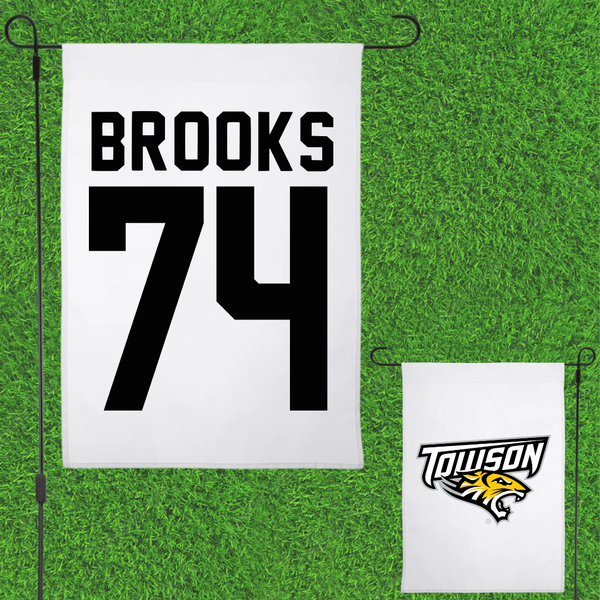 Towson University Football White Garden Flag - #74 KJ Brooks