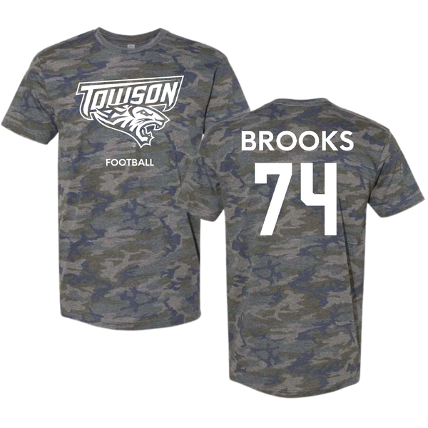 Towson University Football Vintage Camo Tee - #74 KJ Brooks