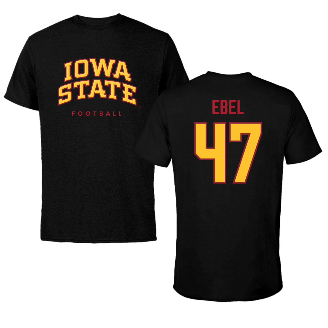 Iowa State University Football Black Performance Tee - #47 Kooper Ebel