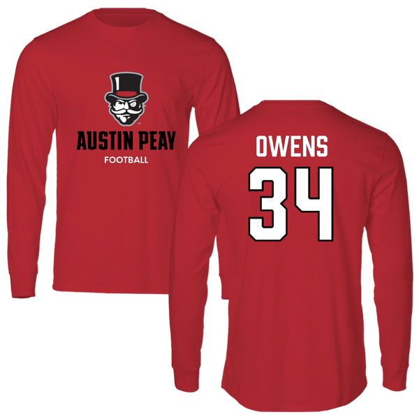 Austin Peay State University Football Red General Long Sleeve - #34 KT Owens