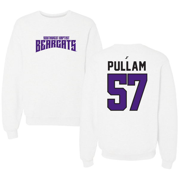 Southwest Baptist University Football White Classic Crewneck - #57 Landon Pullam