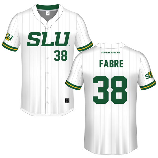 Southeastern Louisiana University White Pinstripe Button-Down Jersey - #38 Larson Fabre