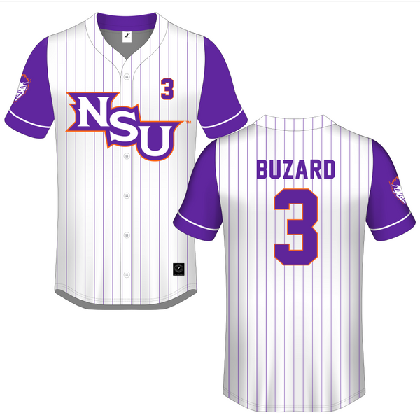 Northwestern State University White Pinstripe Button-Down Jersey - #3 Lathen Buzard