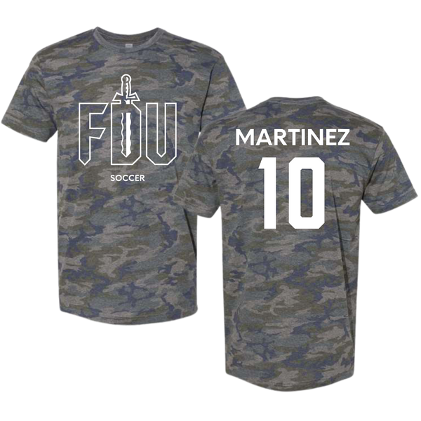 Fairleigh Dickinson University-Metropolitan Campus Soccer (W) Vintage Camo Tee - #10 Laura Martinez