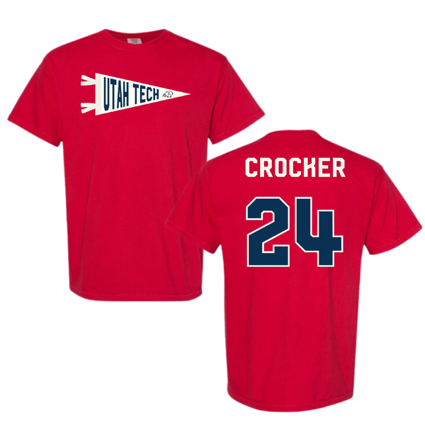 Utah Tech University Basketball Red Pennant Comfort Colors Tee - #24 Lauren Crocker