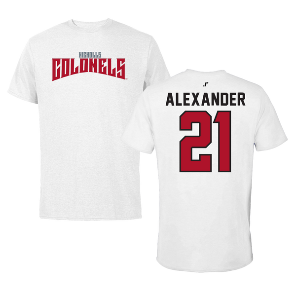 Nicholls State University Basketball White Classic Tee - #21 Lexi Alexander