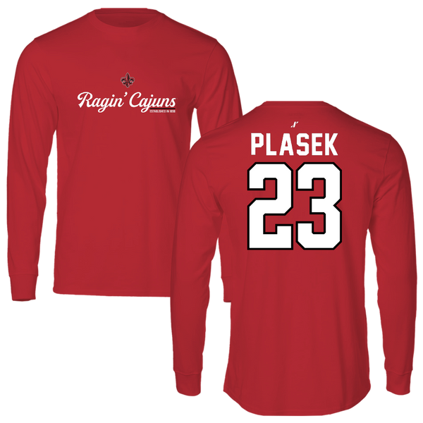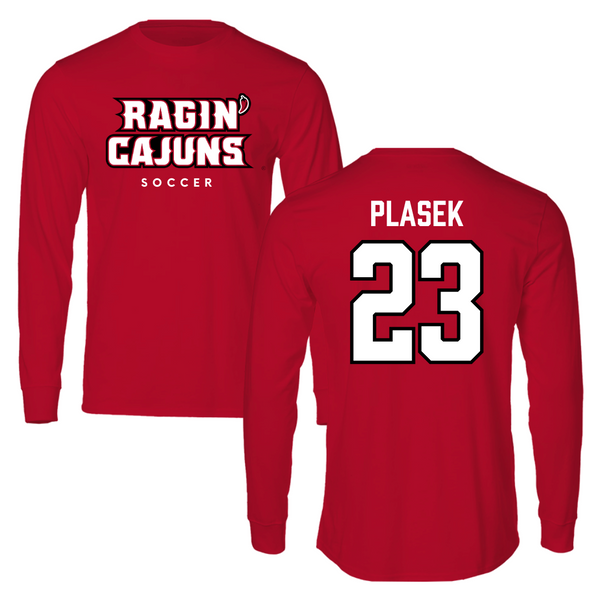 University of Louisiana at Lafayette Soccer Red Long Sleeve - #23 Liberty Plasek