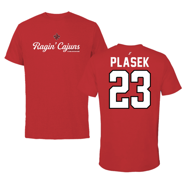 University of Louisiana at Lafayette Soccer Red Tee - #23 Liberty Plasek