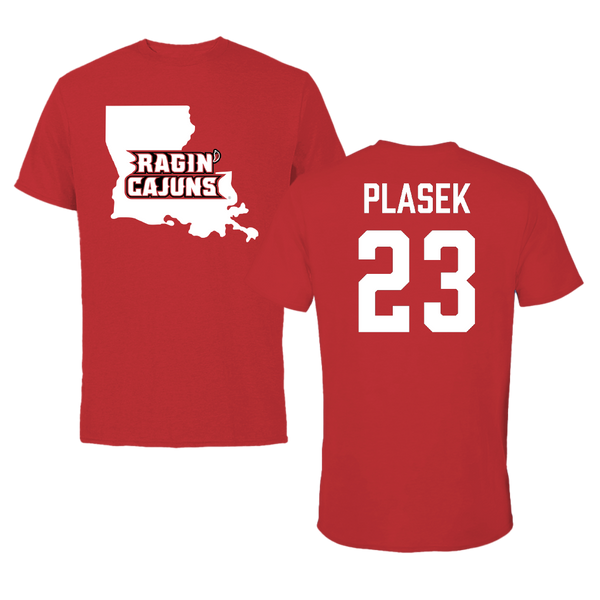University of Louisiana at Lafayette Soccer Red State Tee - #23 Liberty Plasek