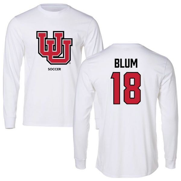 University of Utah Soccer (W) White Block Long Sleeve - #18 Lilliah Blum