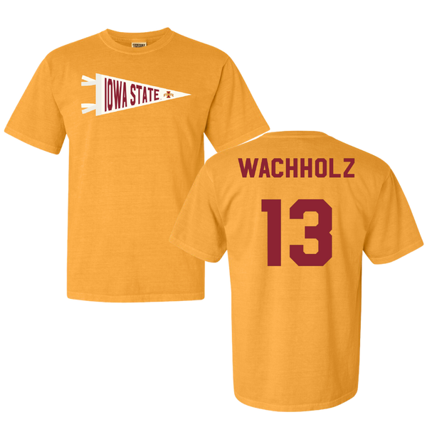 Iowa State University Volleyball Gold Pennant Comfort Colors Tee - #13 Lilly Wachholz