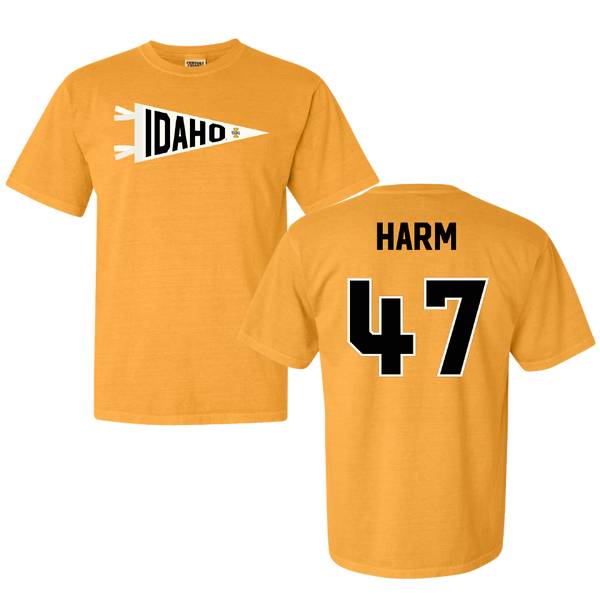 University of Idaho Football Gold Pennant Comfort Colors Tee - #47 LJ Harm