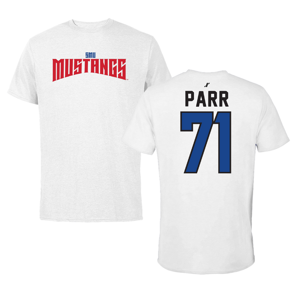 Southern Methodist University Football White Tee - #71 Logan Parr