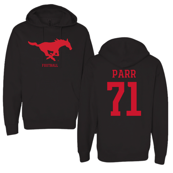 Southern Methodist University Football Black Mascot Hoodie - #71 Logan Parr
