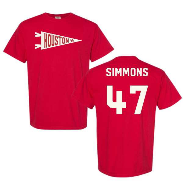 University of Houston Baseball Red Pennant Comfort Colors Tee - #47 Logan Simmons