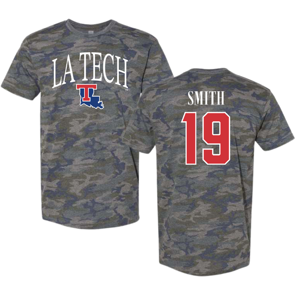 Louisiana Tech University Baseball Vintage Camo Tee - #19 Luke Smith