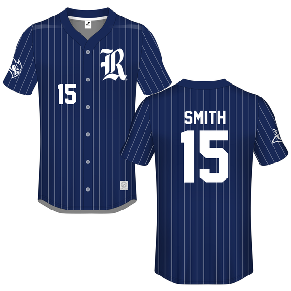 Rice University Navy Pinstripe Button-Down Jersey - #15 Luke Smith