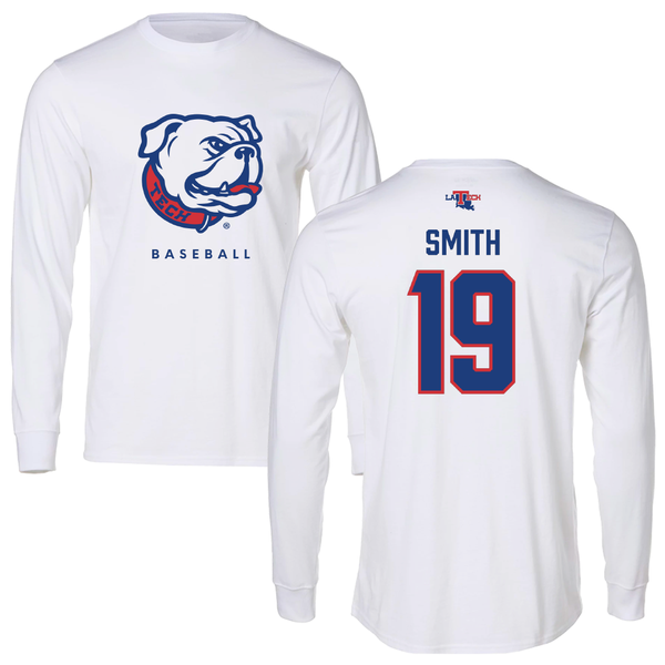 Louisiana Tech University Baseball White Performance Long Sleeve - #19 Luke Smith