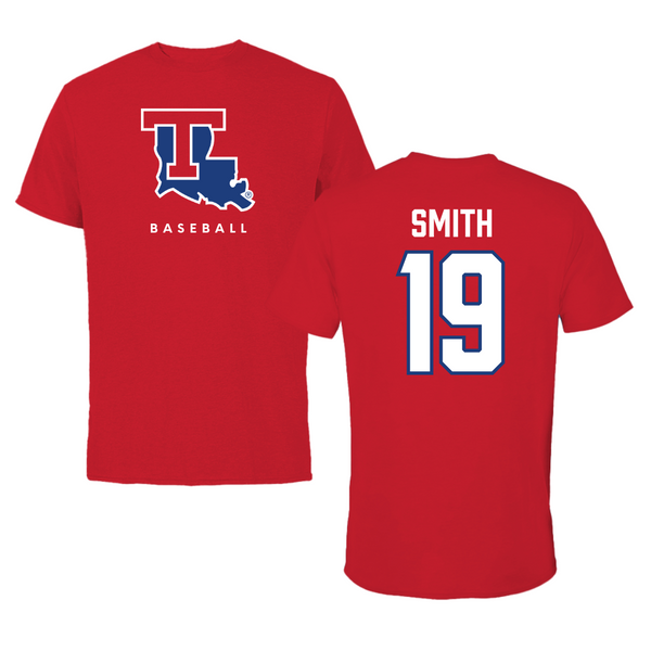 Louisiana Tech University Baseball Red Performance Tee - #19 Luke Smith