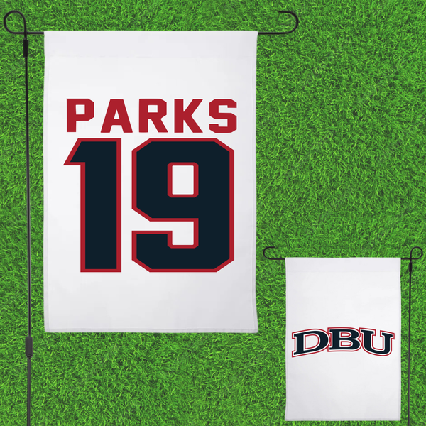 Dallas Baptist University Soccer White Garden Flag - #19 Madison Parks