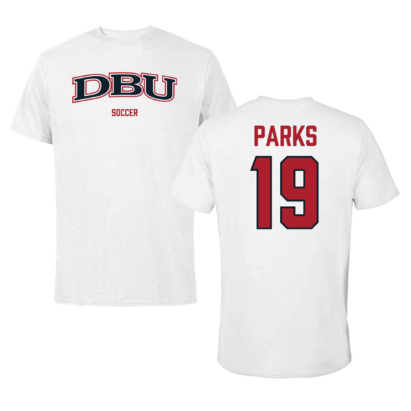 Dallas Baptist University Soccer (W) White Tee - #19 Madison Parks