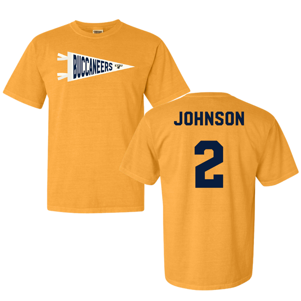 East Tennessee State University Basketball Gold Pennant Comfort Colors Tee - #2 Maki Johnson