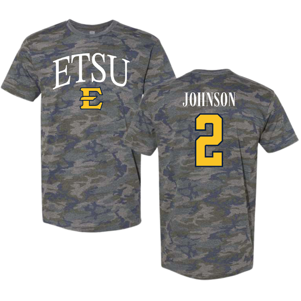 East Tennessee State University Basketball Vintage Camo Tee - #2 Maki Johnson