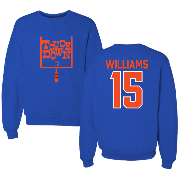 Boise State University Football Blue Touchdown Crewneck - #15 Malakai Williams